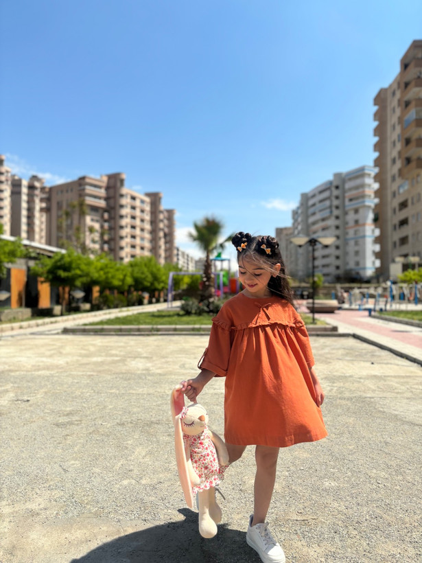 پیراهن دخترانه جنس لینن بدون آبرفت و رنگدهی