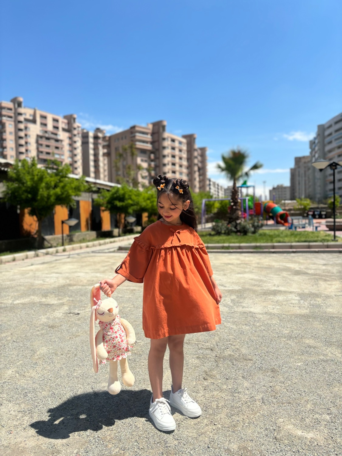 پیراهن دخترانه جنس لینن بدون آبرفت و رنگدهی